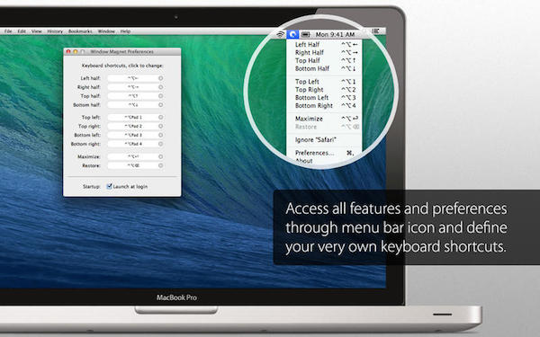 Window Magnet for mac屬于那種生不逢時的應(yīng)用,雖說功能不錯,但他有的別人家也都有,而且還是收費,就更沒優(yōu)勢了,唯一值得一提的是他支持外接顯示器的窗口布局管理。Window Magnet for mac過簡單的拖拽到屏幕的邊緣和角落,最大化它們。