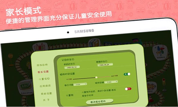 兒童桌面-讓您的手機(jī)平板一鍵變身兒童早教學(xué)習(xí)機(jī)!面對(duì)移動(dòng)設(shè)備的專業(yè)兒童桌面,管理兒童使用移動(dòng)設(shè)備的時(shí)間、頻率和內(nèi)容,防止兒童誤刪信息,保護(hù)兒童規(guī)避不健康內(nèi)容,給予兒童安全、獨(dú)立玩耍和學(xué)習(xí)的空間。