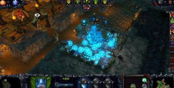 派兵去地面,地上有個(gè)入口可以通地下城正上方,那里有個(gè)3只元素怪守的水晶塔,打掉水晶塔抓起來,放自己地下城這邊那個(gè)像井一樣的上面,就會刷出幾只娜迦加入你,然后就可以建水晶房間了!