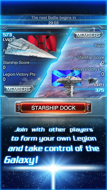 星球大戰(zhàn)超魄力的宇宙飛船對戰(zhàn)將從這里開始。與世界各地的星戰(zhàn)迷合組軍團(tuán)(Legion),與其他軍團(tuán)(Legion)即時對戰(zhàn)!集合隊友之力強(qiáng)化宇宙飛船,奪取勝利去獲取更加強(qiáng)大的飛船。加入軍團(tuán)(Legion),既可與隊友進(jìn)行友誼賽,也可以使用隊友間的即時通信增強(qiáng)隊友之間的合作!
