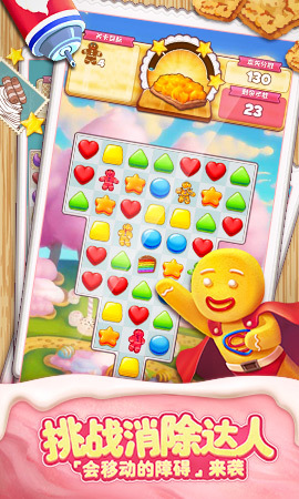 除了傳統(tǒng)的消除玩法之外,還有姜餅人來襲,冰風(fēng)暴,無盡模式等創(chuàng)新消除玩法等你來體驗(yàn)!