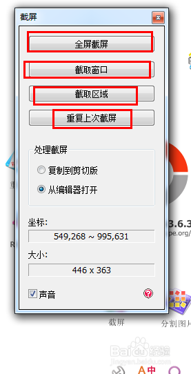 “全屏截屏” “截取窗口” “截取區(qū)域” “重復(fù)上次截屏”