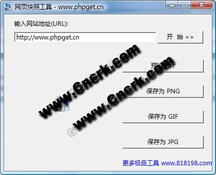 網(wǎng)頁快照工具 是一款非常簡單和容易使用的免費(fèi)截圖工具。截取網(wǎng)站只需要輸入網(wǎng)址后一次點(diǎn)擊就可以完成。支持多種圖片格式,支持圖片預(yù)覽,完全綠色和免費(fèi)