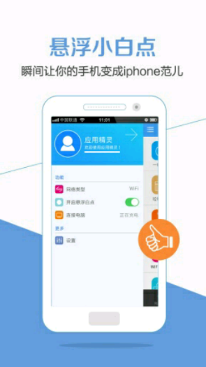 【分類管理】自動對手機的應(yīng)用進行分類管理,幫助您更好地管理你的應(yīng)用【懸浮小白點】靈活地進行應(yīng)用間的切換,瞬間讓你的手機變成iphone范兒。