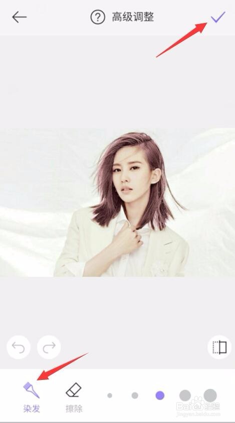 單擊之后就會(huì)進(jìn)入到高級(jí)調(diào)整面板,此時(shí)我們就可以手動(dòng)給頭發(fā)上色了。那么怎么手動(dòng)染色呢?只需要將手指移到想要染發(fā)的頭發(fā)上,用手涂抹就可以染色了。