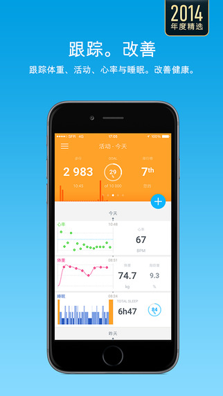 Health Mate是由Withings公司推出的ios健康應用,健康伴侶 《Health Mate》 已支持蘋果手表,配合自家的多款智能設備,可以用來記錄體重、心率、睡眠狀況等等,它最好用的功能還是后臺計步器,非常方便。日前《Health Mate》最新版本更新支持 Apple Watch,正式成為你手腕上的“健康管家”。