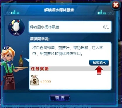 點擊游戲下方的酒水圖標,可以看到酒水的現(xiàn)存狀況和調(diào)制酒水、提升酒水等級等功能。只有在 酒水充足情況下才能更快的賺取鈔票,所以各位玩家要及時補充酒水喲。