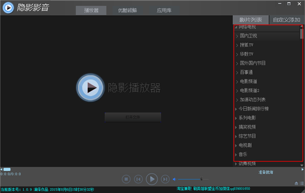 隱影播放器是一款2015年最新的視頻播放神器,這款播放器界面簡潔美觀,它不僅支持本地視頻播放,同時還支持在線視頻播放,多種音頻視頻格式全部支持,不管是本地播放還是在線點播、斷點續(xù)傳、記憶下載、離線觀看它都一應俱全,為你帶來全新的視頻觀看體驗!歡迎廣大用戶免費下載使用!