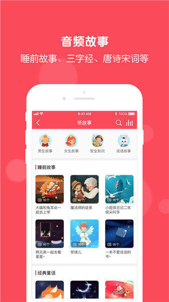 兔耳故事是一個(gè)早教睡前故事APP,不僅會(huì)講故事、唱兒歌、看繪本,還可以教大家手工課簡(jiǎn)筆畫(huà),包含了豐富的睡前故事、繪本、童話故事等內(nèi)容。兔耳故事由專(zhuān)門(mén)的配音人員做成有聲讀物,并對(duì)不同的故事進(jìn)行科學(xué)分類(lèi),為大家精心挑選豐富有趣的睡前故事閱讀。