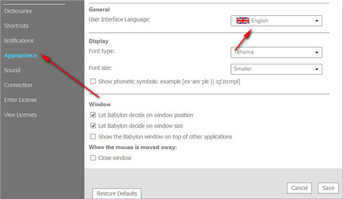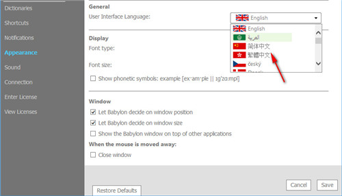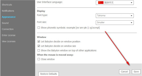 8、這里是翻譯的窗口大小,如果您翻譯的內(nèi)容比較多,babylon可以自動(dòng)調(diào)試翻譯的文字