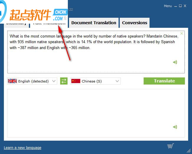 3、如圖所示,這款軟件不僅轉(zhuǎn)換的語(yǔ)言很多,界面菜單的語(yǔ)言種類也很多,這里選擇中文簡(jiǎn)體