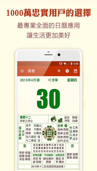 5、每日宜忌:關(guān)注黃道吉日,好日子做該做的事,事事順利!