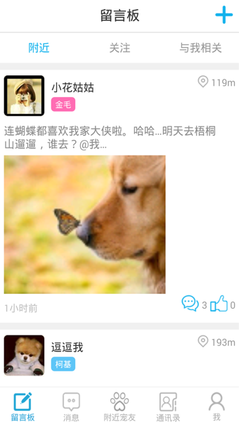 彈幕雷達(dá):最I(lǐng)N遛寵雷達(dá),發(fā)現(xiàn)身邊約遛小伙伴,自帶彈幕神器,圍觀吐槽任君挑選。分享動態(tài):隨時隨地發(fā)布動態(tài),與寵友們互相分享養(yǎng)寵新鮮事。