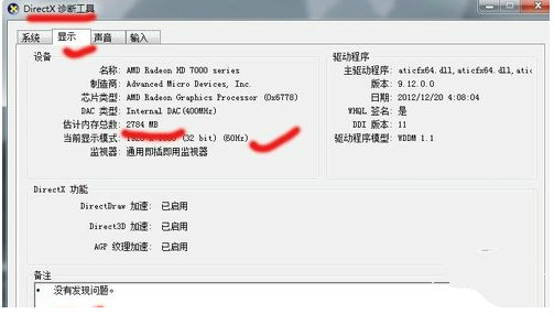 如果要查看DX運(yùn)行是否正常,可以點(diǎn)擊窗口中的“顯示”標(biāo)簽