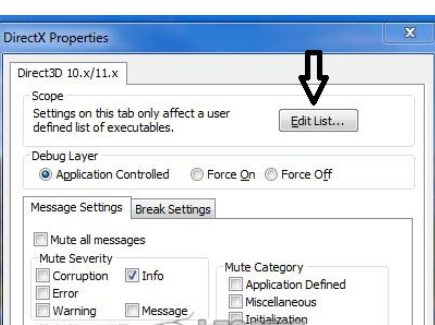 2: 開始 - >運(yùn)行dxcpl - >編輯列表