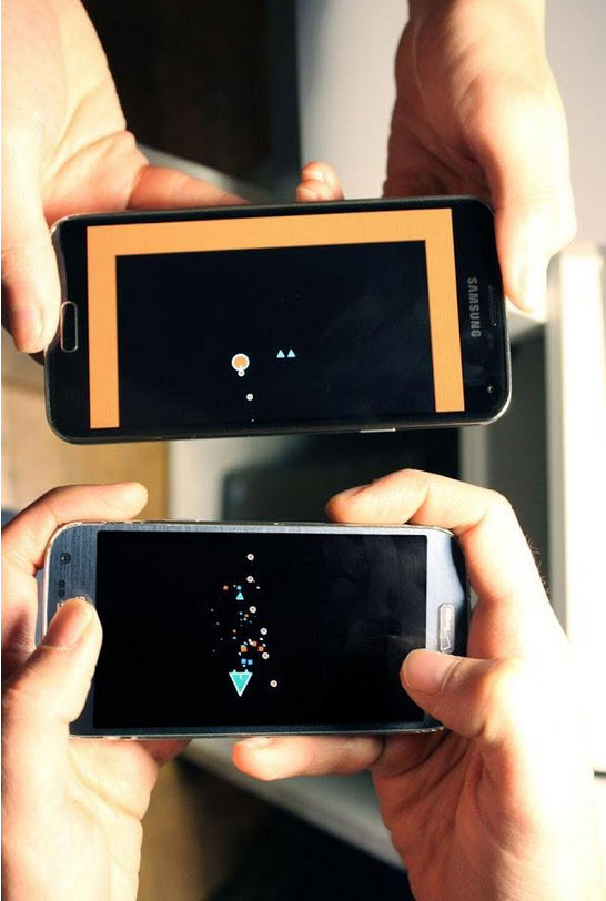 一位曾參與過(guò)游戲《偵探家族 Guilty Party》和《復(fù)仇者聯(lián)盟 Avengers Initiative》制作的程序猿,Sebastian Gosztyla曾參與過(guò)游戲《偵探家族》(Guilty Party)和《復(fù)仇者聯(lián)盟》(Avengers Initiative)制作,在厭倦了一般游戲封閉、虛擬的特性后,決定自己大展拳腳,做一款能夠跟其他小伙伴一起互動(dòng)玩耍的雙人游戲,本作由此誕生。這是款實(shí)實(shí)在在需要兩位基友一起愉快地玩耍的游戲,大致就是哥倆拿出手機(jī)面對(duì)面站/坐/躺著,手機(jī)屏幕就是比賽場(chǎng)地,兩枚手機(jī)通過(guò)無(wú)線網(wǎng)絡(luò)或是藍(lán)牙連接起來(lái),然后雙方互發(fā)飛碟,通過(guò)重力感應(yīng)等系統(tǒng)接過(guò)對(duì)方發(fā)來(lái)的飛碟。心理承受能力好的童鞋可以看看游戲的試玩視頻,小燒白表示那畫(huà)面太美我不敢看!