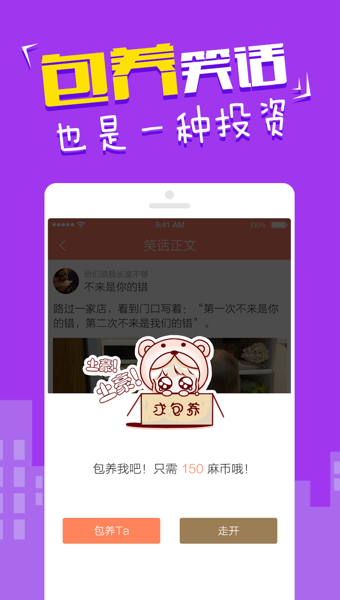 發(fā)布笑話可選擇被包養(yǎng),你中意的笑話也可包養(yǎng),賺取麻花幣。