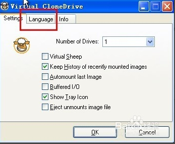 2.Language設(shè)定頁簽中,可以挑選不同的軟體語言介面,不過目前12種語系中,還沒有繁體中文版本的語系,日後如有找到中文語系檔的話,可以直接把它放到「C:\Program Files\Elaborate Bytes\VirtualCloneDrive\Texts」資料夾中,再到這個(gè)設(shè)定頁面中點(diǎn)選,就可以切換成中文版來使用。