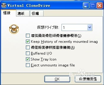 1. 開啟Virtual CloneDrive設(shè)定視窗後,「Number of Drives」欄位可以設(shè)定虛擬光碟機(jī)的數(shù)量,用量不多的話就設(shè)定為「1」,開一臺(tái)使用就好。最多可以設(shè)定到15臺(tái),另外我們也可勾選「Automount last Image」,讓Virtual CloneDrive自動(dòng)掛載上次使用過的光碟映像檔,方便我們快速取用映像檔中的資源,如果勾選上面的「Virtual Sheep」選項(xiàng),「我的電腦」視窗里的虛擬光碟機(jī)圖示會(huì)變成Virtual CloneDrive軟體的羊頭圖示,便於跟其它光碟機(jī)在視覺上作區(qū)隔。
