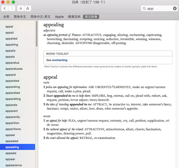 牛津詞典mac版是由牛津大學(xué)最新推出的一款英語翻譯軟件,為用戶提供了包括介詞、副詞、動詞、名詞等在內(nèi)的多種內(nèi)容,并且給予了詳細的注釋說明,幫助用戶進一步理解單詞內(nèi)容。