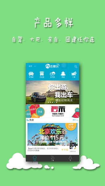 周末去哪玩旅游產(chǎn)品覆蓋:大巴游,自駕游,親子游,徒步游,社區(qū)直通車,團(tuán)建,景點(diǎn)門票,多種多樣隨便你玩。多條路線,多重產(chǎn)品讓你想玩就玩,想去就去。
