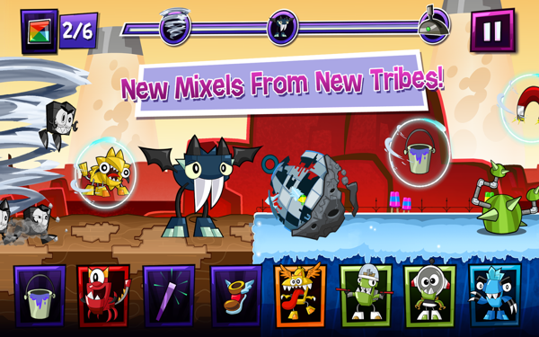 快來玩 Mixels Rush,使用厲害的新合體小精靈,進(jìn)行瘋狂合體來擊敗煩人的尼克斯!