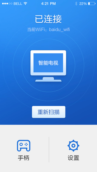 3、啟動百度手柄,會自動發(fā)現(xiàn)和連接智能電視設(shè)備。