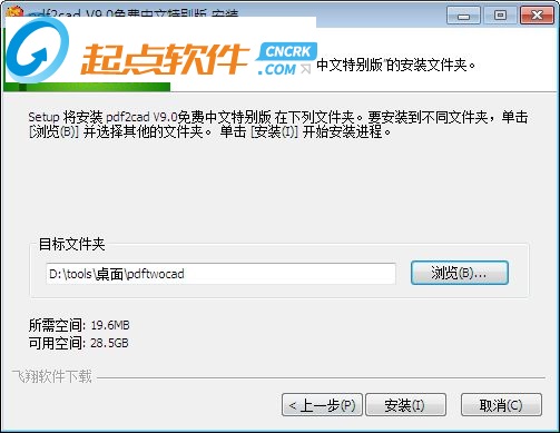 3、選擇目標(biāo)文件夾,默認(rèn)文件夾“C:\Program Files (x86)\pdftwocad”,建議安裝在D盤,點(diǎn)擊安裝;