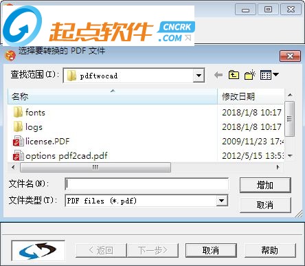 彈出如下對(duì)話框,然后瀏覽并找到你要轉(zhuǎn)換的pdf,然后點(diǎn)擊增加。