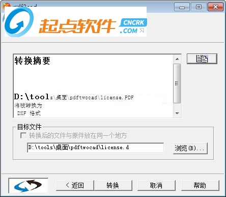 彈出的對(duì)話框中,下面的目錄為轉(zhuǎn)換成cad所存放的目錄,建議PDF文件和轉(zhuǎn)化的cad文件不要放在一個(gè)文件當(dāng)中,否則會(huì)出錯(cuò)。