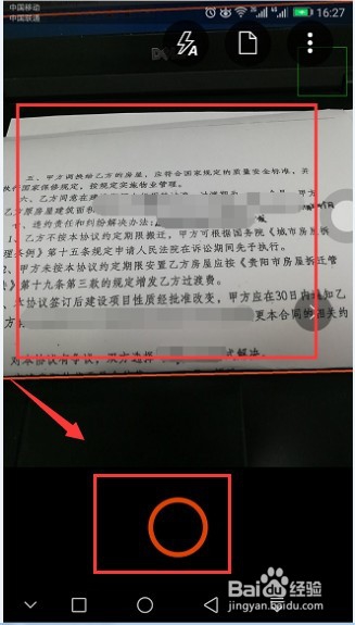 找到我們想要做成可編輯文檔的紙質(zhì)文檔,然后點(diǎn)擊下方的拍攝按鈕。
