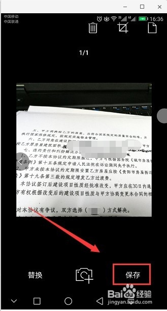 拍攝完成之后, Office Lens 會簡單的對圖片進(jìn)行剪切和美白處理,如果我們還有其他的需求,還可以使用上方的工具對圖片進(jìn)行一些簡單的處理,處理完成之后點(diǎn)擊下方的保存按鈕。
