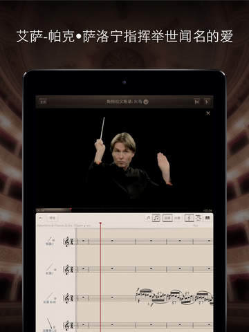 聽命于您的樂團:以前所未有的方式體驗古典音樂,引人入勝的功能包括:視頻,同步樂譜,簡譜,以及艾薩-帕克?薩洛寧的講評。發(fā)現(xiàn)節(jié)拍圖示(BeatMap):突破性的表演可視化,顯示了樂團不同分部的實時音樂脈動,幫助您了解每一作品的復雜性。用手指按住單獨聽到樂隊的不同部分。