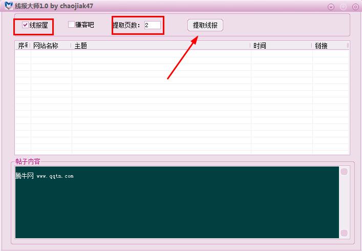 1、勾選線報屋/賺客吧,填寫提取頁數(shù),點擊提取線報;