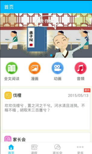 趣國學(xué)內(nèi)有《弟子規(guī)》《三字經(jīng)》《千字文》《中國古典詩詞欣賞》《聲律啟蒙》《論語》《孟子》《大學(xué)》《中庸》《古文觀止新編》《孫子兵法》等一系列經(jīng)典國學(xué)教材。每本教材皆有量身打造的趣味動(dòng)畫、精彩漫畫和真人朗讀語音。