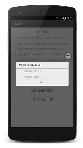 1.iOS觸控軟件是能改變安卓4.4.2以下系統(tǒng)的屏幕觸控機制為優(yōu)先級,讓安卓手機的觸控滑動流暢快速,反應更快更順滑。