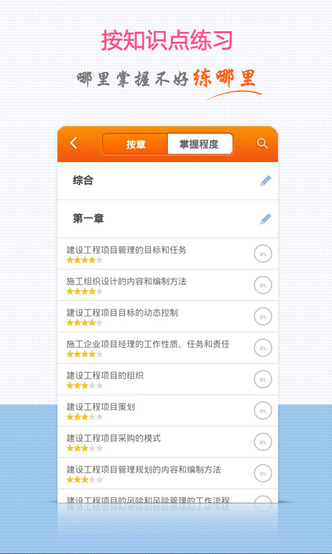 包括章節(jié)、知識(shí)點(diǎn)兩種練習(xí)方式,既滿足習(xí)慣按章節(jié)復(fù)習(xí)的學(xué)員們的需求, 又不缺乏針對(duì)性更強(qiáng)的知識(shí)點(diǎn)練習(xí)方式,便于強(qiáng)化與鞏固考試大綱中的高分知識(shí)點(diǎn)。