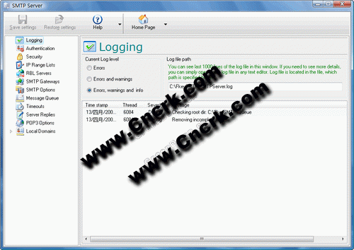 Advanced SMTP Server V3.2 英文綠色特別版 Advanced SMTP Server 是一款SMTP服務器軟件,可以替代ISP的SMTP服務器,直接把信件發(fā)送到收件者的郵箱。支持Outlook Express, Outlook, Eudora等客戶端程序,支持并發(fā)操作,傳輸速度快,易于使用