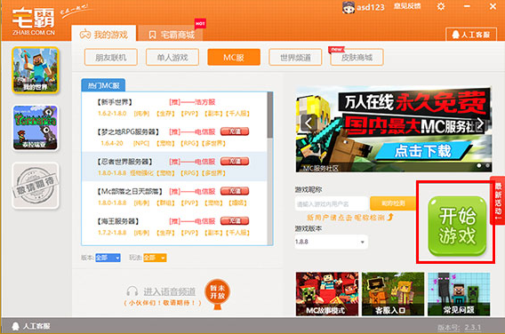宅霸MC服務(wù)器連接方法:1、選擇您想進(jìn)入的MC服務(wù)器