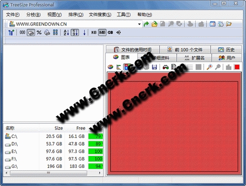 TreeSize Professional V5.2.3.505 漢化綠色特別版 這是一款windows9x/me/nt/2000/xp下強(qiáng)大靈活的硬盤(pán)空間管理工具。它能夠?yàn)槟氵x擇的幾個(gè)文件夾和驅(qū)動(dòng)器顯示其大小,已分配空間和被浪費(fèi)空間的大小,文件的數(shù)目,文件擁有者,3D條形和餅狀統(tǒng)計(jì)圖,最后訪問(wèn)的日期,NTFS壓縮率及更多其它信息