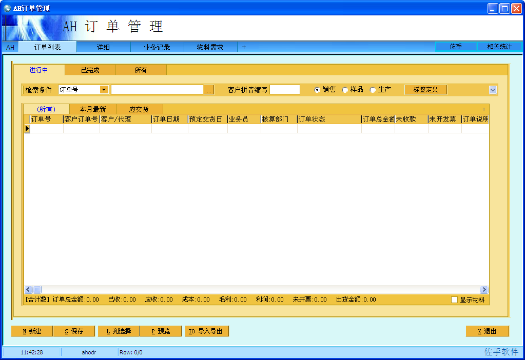 AH訂單管理軟件是一款秉承佐手AH系列軟件新穎實用簡便的特點,是一款適用于各行業(yè)各單位的通用訂單管理軟件,一款傻瓜型的企業(yè)銷售訂單管理軟件,該軟件界面新穎友好,直觀簡潔,任意條件模糊查找,多種靈活的自定義功能使之能適用于各行業(yè)單位的訂單管理需要,如果您在尋找訂單管理軟件下載,建議您在此下載AH訂單管理軟件,佐手軟件將是您的企業(yè)訂單管理最好的幫手。【軟件特點】