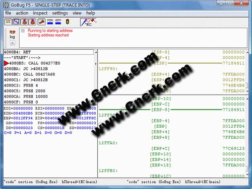 GoBug是一個(gè)為Windows程序員設(shè)計(jì)的符號(hào)化調(diào)試程序,它可以分析Windows代碼、數(shù)據(jù)、事件和消息,并以匯編語(yǔ)言的形式來(lái)分解。