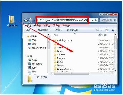 3、此時就會產(chǎn)生一個名為“characters”的文件夾,將其拖動復制到“C:\Program Files\騰訊游戲\英雄聯(lián)盟\Game\DATA"目錄下。