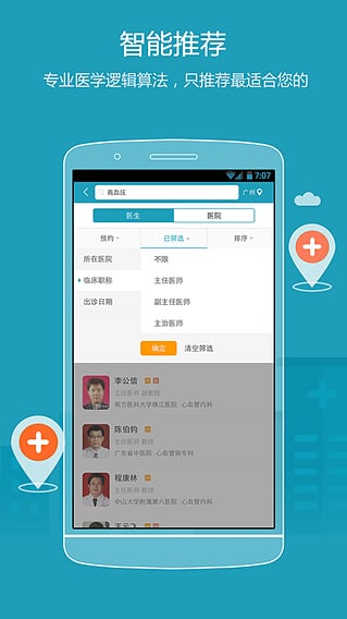 4.[智能推薦]專業(yè)醫(yī)學邏輯算法+診后用戶的評價+您的疾病和地區(qū)=推薦最適合您的醫(yī)院和醫(yī)生!