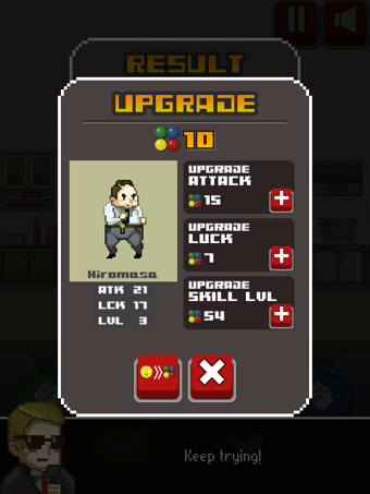 游戲的操作方式很有意思,屏幕下方有4個(gè)不同顏色的攻擊按鈕,而正中間的那個(gè)小小的類似于紅綠燈的東西,就是告訴我們應(yīng)該按那些顏色攻擊按鈕的提示區(qū)域。例如:中間顯示的是藍(lán)綠,那么我們只要按照提示依次按下藍(lán)色的拳頭按鈕和綠色的拳頭按鈕,就可以快速破壞當(dāng)前目標(biāo),而不用依賴初期比較低的攻擊力去一下下慢慢磨血。這是游戲的核心系統(tǒng),也就是讓玩家按照提示來迅速而正確地進(jìn)行按鍵操作。