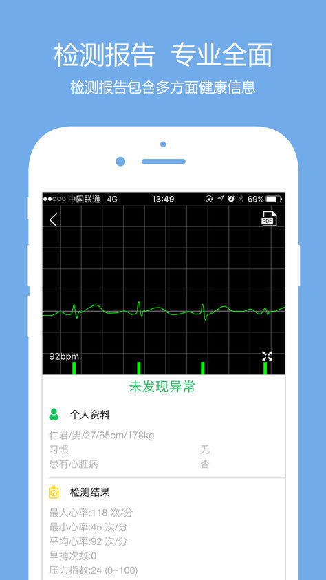【心電儀】您可以使用極簡(jiǎn)心電,花一分鐘隨時(shí)隨地檢測(cè)自己的心臟健康狀況,通過(guò)大數(shù)據(jù)分析,為個(gè)人心臟健康建立數(shù)據(jù)模型,提示健康風(fēng)險(xiǎn),還可以根據(jù)極簡(jiǎn)心電給出的健康評(píng)估和指引,優(yōu)化自己的生活方式,從而實(shí)現(xiàn)對(duì)自身健康的科學(xué)管理。