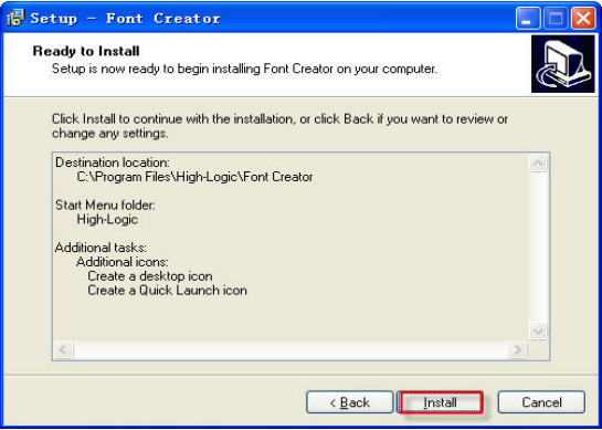 最后,確認(rèn)安裝信息后,點擊“Install”進(jìn)行安裝,勾選“是否啟動Font Creator”,點擊“Finish”,完成安裝。