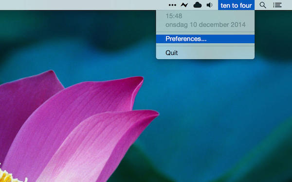 FuzzyTime for Mac是一款在Mac上的菜單欄時間顯示增強(qiáng)工具,F(xiàn)uzzyTime可以用來代替Mac內(nèi)置的時間工具,用一種更符合人們習(xí)慣的時間顯示方式,比如你會看到“四點(diǎn)四十”,而不是16:40,它會讓你更加有時間觀念。