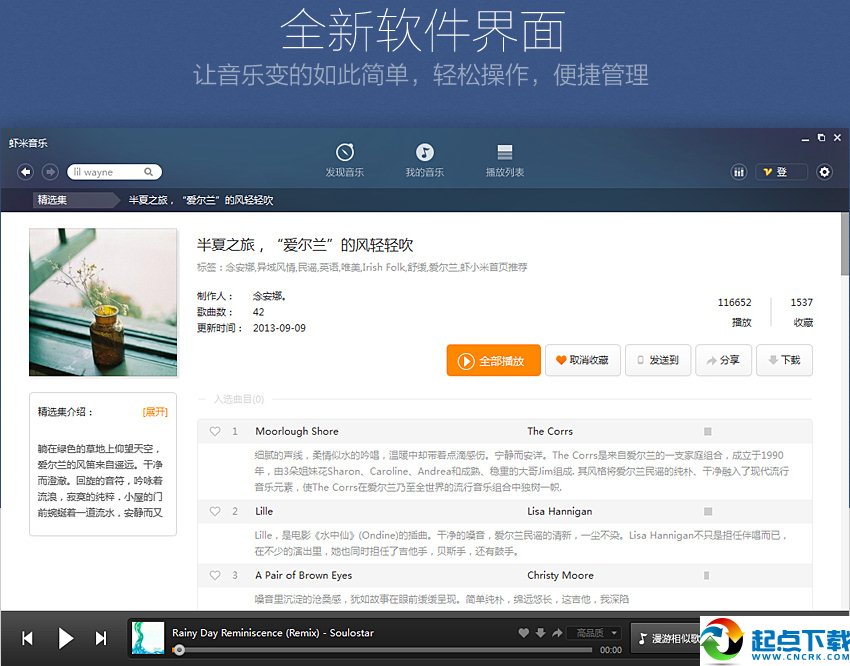 3、最自由的聽歌體驗,500多萬張由音樂達人制作的絕贊精選集,滿足千奇百怪的聽歌愛好;