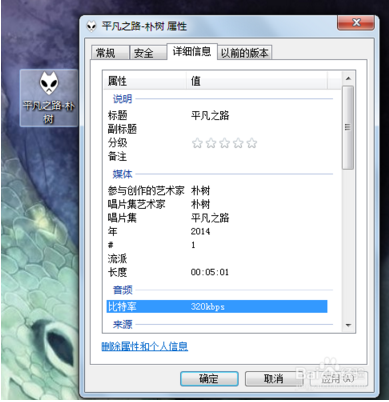 6、選中歌曲點擊右擊可以查看歌曲信息,蝦米音樂下載的歌曲一般都是320kbps,作為普通的MP3格式中質(zhì)量算是最高的了,因而播放音質(zhì)較高及對耳朵的損傷也較小。